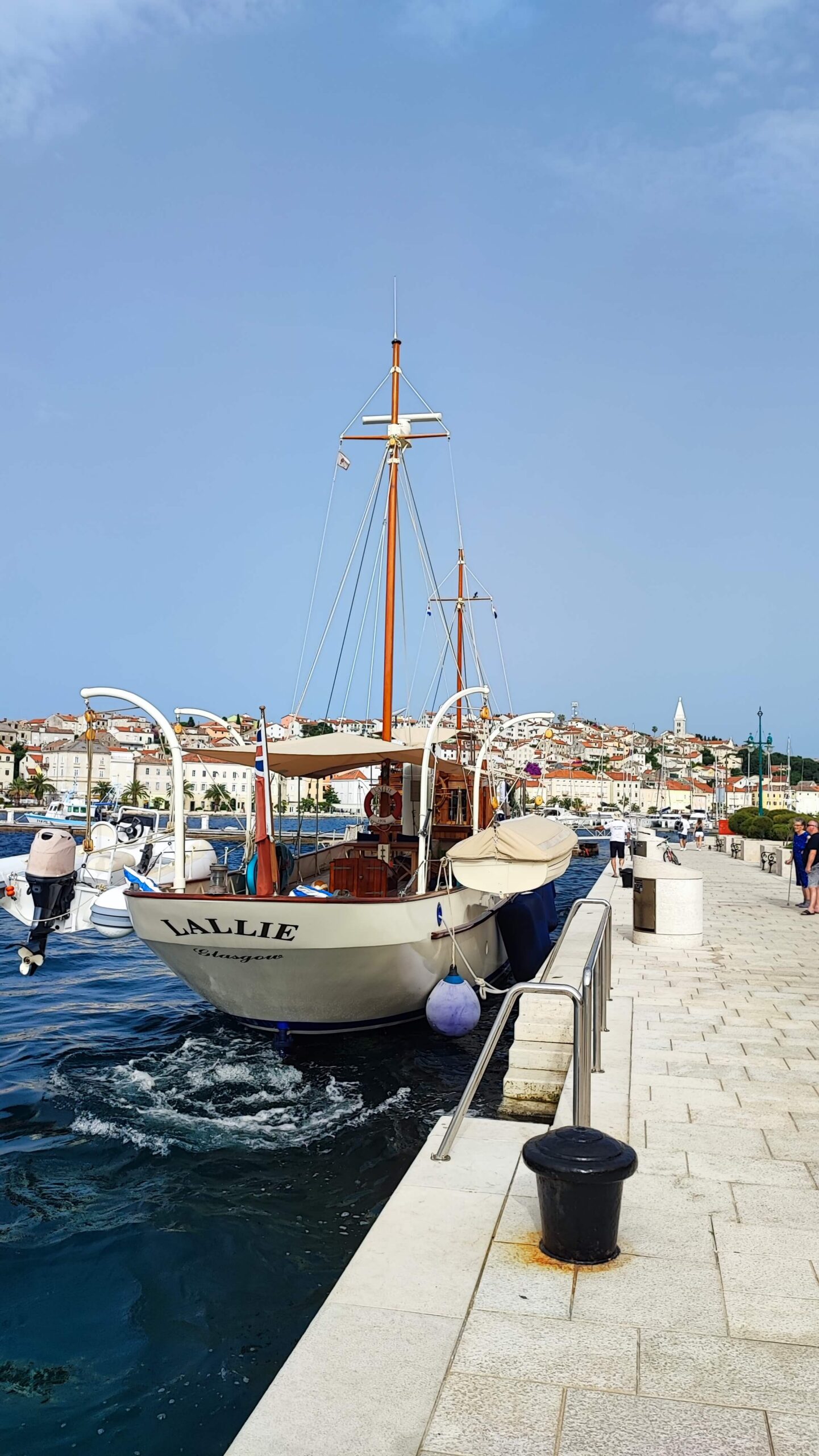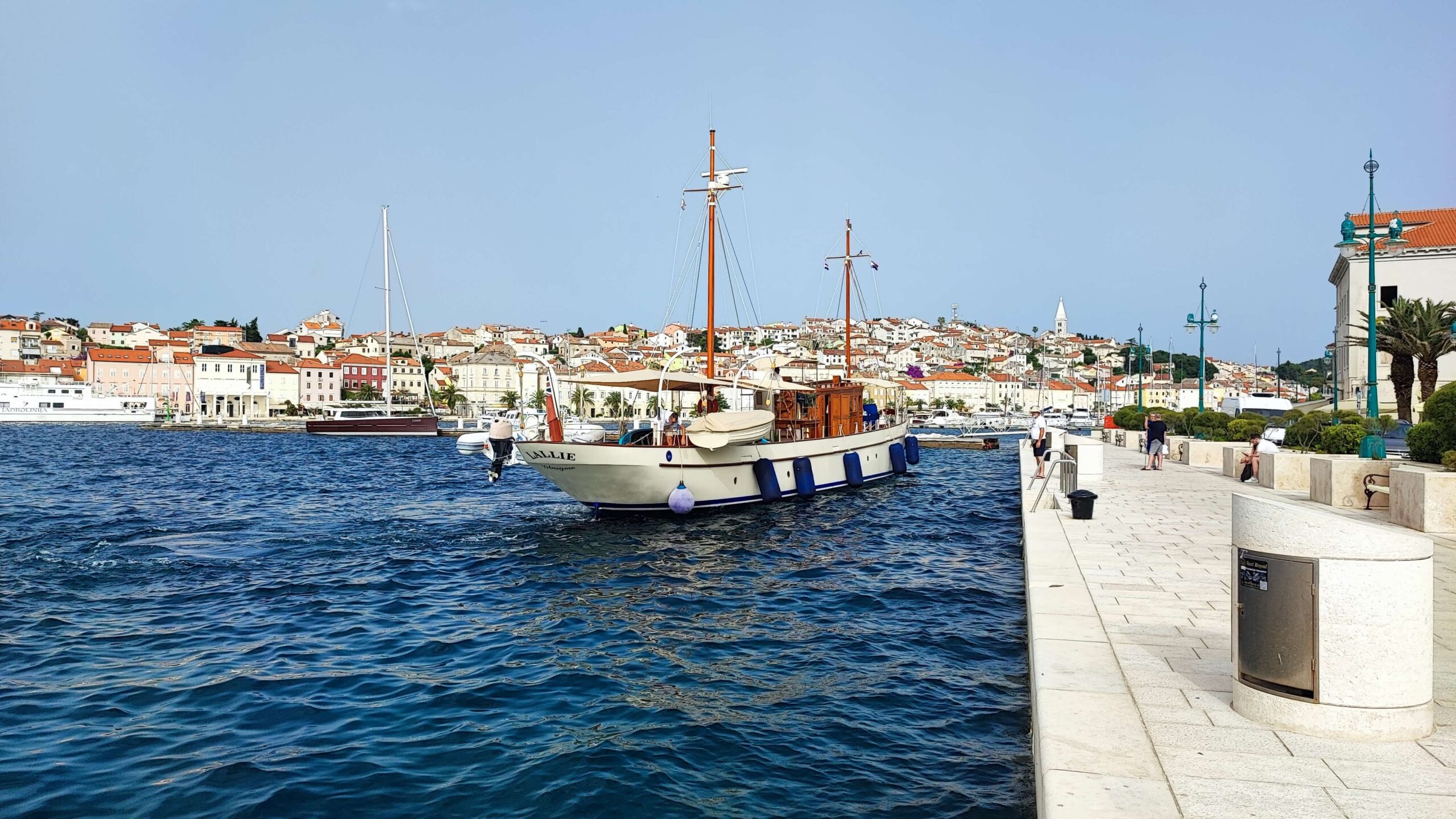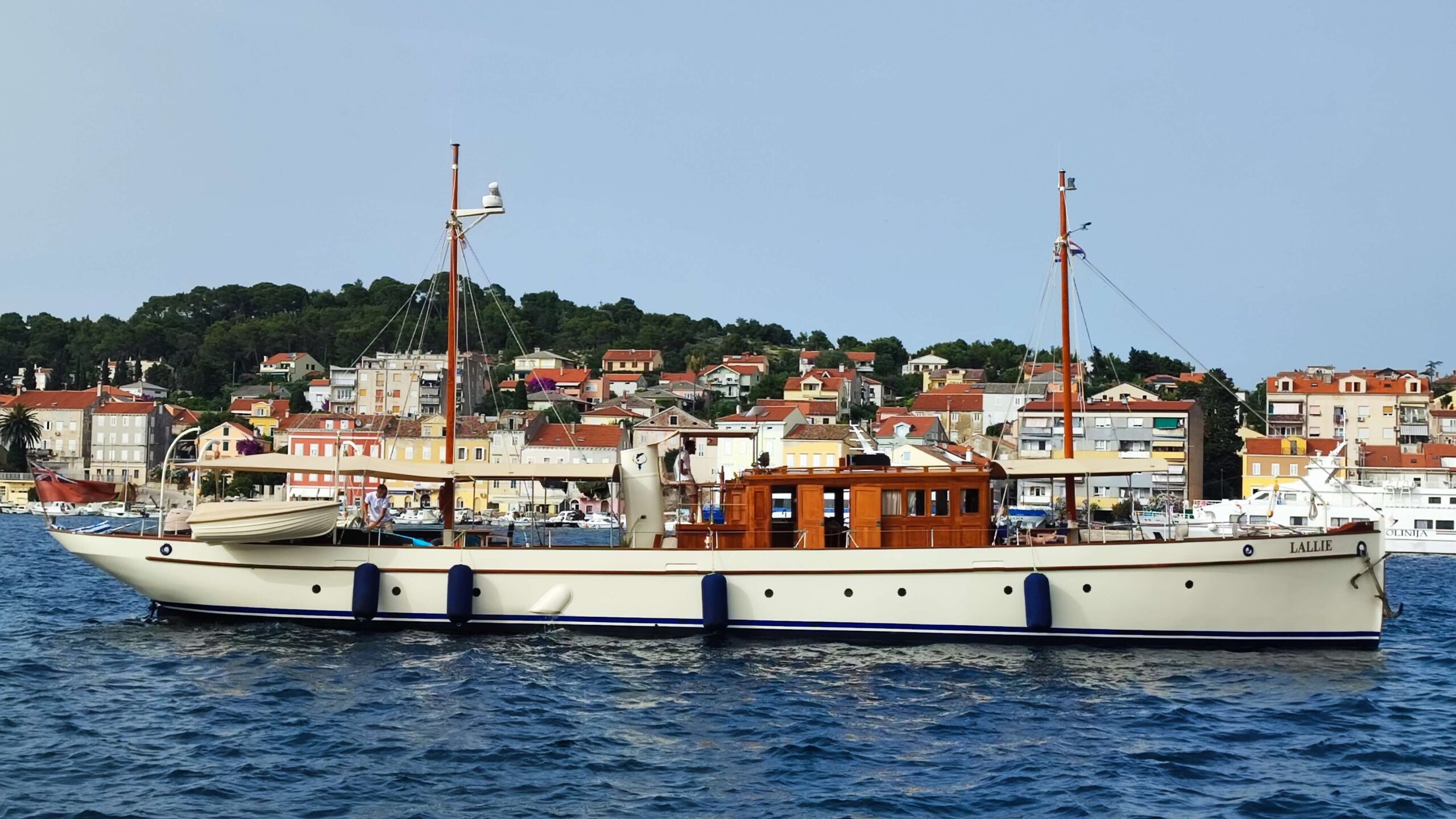 U najmanju ruku zanimljiva i jedinstvena jahtica Lallie uplovila je upravo u malološinjsku luku i vezala se na rivu kod Kapetanije. Brodica je to zanimljivih karakteristika, izgrađena od željeza, uska i dugačka, elegantna, s neouobičajeno malim jarbolima. Kaže nam posada, napravljena je za jezera, pa vjerujem da su jarboli mali kako bi mogli proći i ispod mostova. Dugačka i uska, poput jedrilica, glatka i sjajna, nadgrađe drveno! Lallie je motorna jahta od 25,3 m i širinu od 4,15 m., koju je u Velikoj Britaniji izgradio “Philip” 1908.