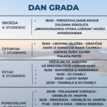 16:00 sati – tradicionalni turnir u Đaponezi gdje prva 3 mjesta dobivaju nagrade. Od 19 sati nastupa DJ Charly, a nakon njega Lucky band! Uz bogatu tombolu fešta će potrajati do dugo u noć.