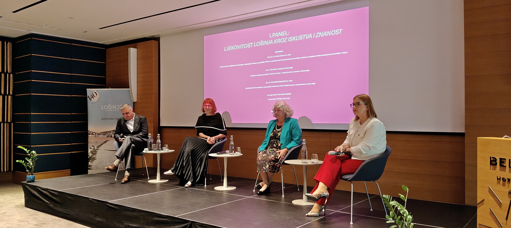 Na prvom, pod nazivom „Ljekovitost Lošinja kroz iskustva i znanost“, sudjelovali su prof. dr. sc. Srđan Banac, dr. sc. Ana Banić, mr. sc. Anamarija Margan Šulc i dr. Ivana Jukić Soldičić.