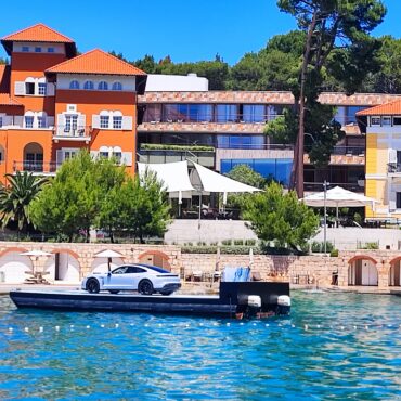 Na teglenici smještenoj u uvali Čikat, nalazi se bijeli električni Porsche Taycan! Porsche Hrvatska, odnosno regionalni Porsche odlučio je predstaviti ovogodišnji model ovog prestižnog vozila! Okupili su se brojni novinari koji prate auto – industriju! Predstavljanje ovog vozila privuklo je brojne vlasnike Porschea, što se primijetilo na otočkim prometnicama i trajektnim pristaništima, doznali smo od Ninoslava Vidovića direktora prodaje i marketinga Jadranka turizma!